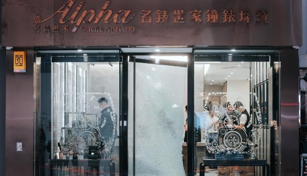 12月12日,香港尖沙咀加連威老道25號“名錶世家”錶行遇劫,最少4名持刀槌的匪徒闖入,掠去多隻名錶,包括6隻Richard Mille、多隻百達翡麗、愛彼等,其中最貴一隻手錶為Richard Mille 35-03型號,價值400多萬港元,消息稱,初步總值約3000萬港元。警方封鎖現場調查,並正追緝劫匪。(香港中通社記者 謝光磊攝)