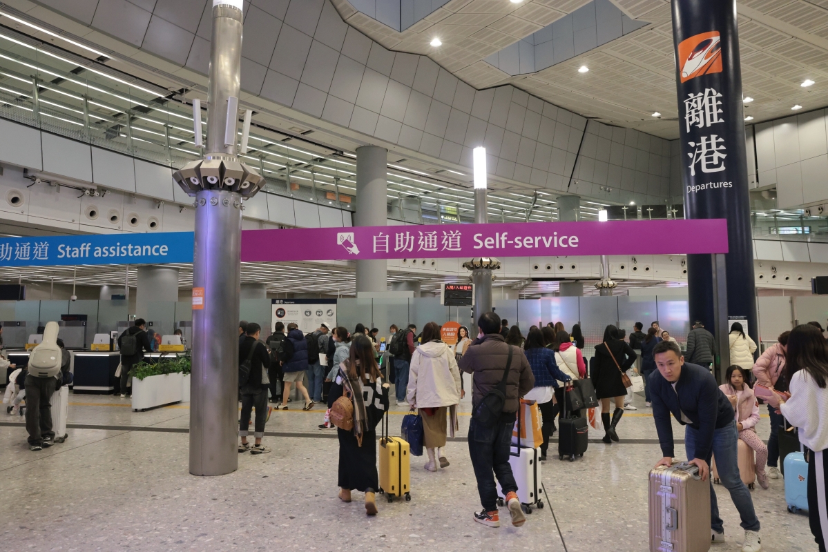 假期尾聲 香港西九龍站迎來返程高峰