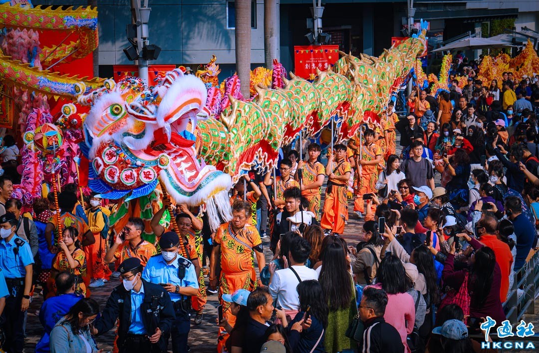 1月1日,2024香港龍獅節暨第六屆世界龍獅日在香港尖沙咀開幕,並於星光大道及香港文化中心舉行大型龍獅巡遊表演。(香港中通社記者 曹文毓攝)