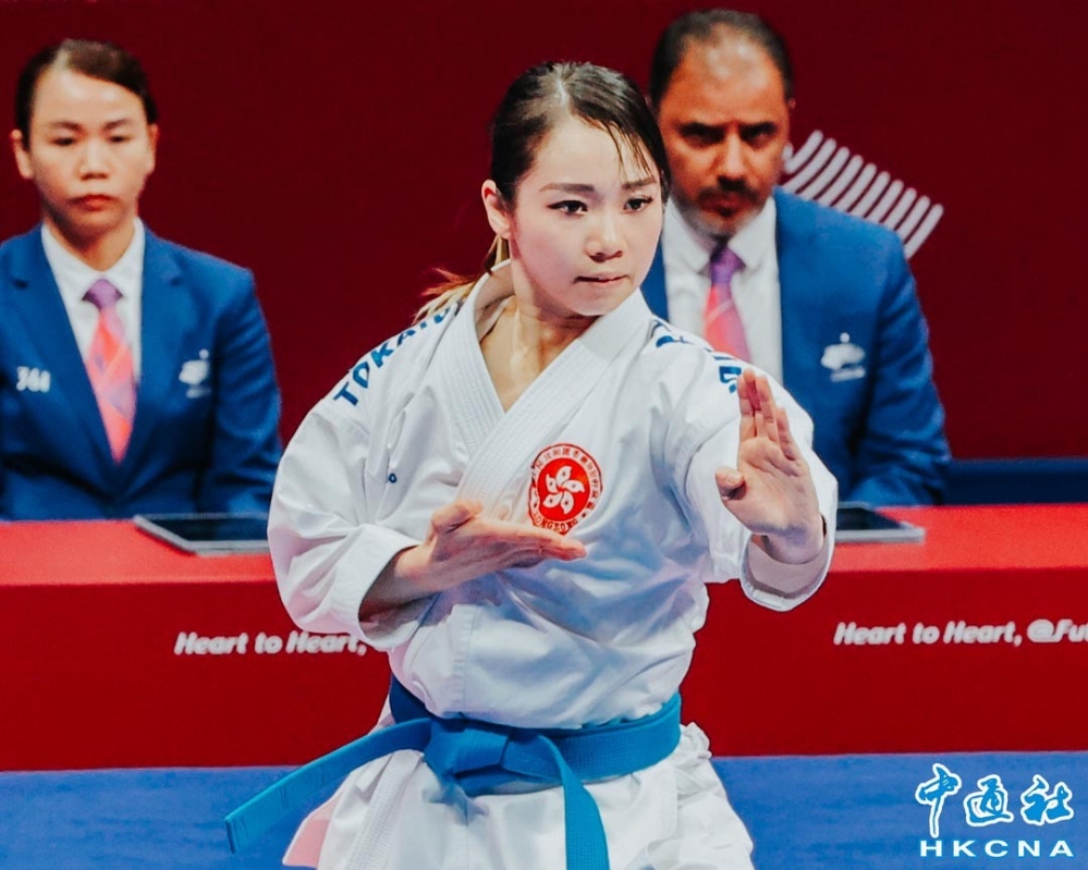 1月3日,香港空手道運動員劉慕裳首次登上女子空手道個人形世界排名第一。劉慕裳在最新世界排名榜上,以7125分由原本的第二位升上第一位,憑藉60分反壓原世界排名第一的日本選手大野光,是香港首位登“世一”的空手道運動員。圖為2023年10月5日,杭州亞運空手道項目賽上,香港選手劉慕裳獲空手道女子個人型銅牌。(香港中通社記者 洪少葵攝)
