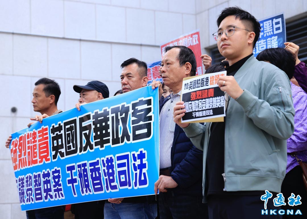 1月5日,香港市民自發到英國駐港總領館前,強烈譴責英國反華政客妄議黎智英案,干預香港司法。(香港中通社記者 曹文毓攝)