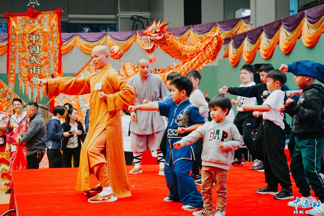 1月6日下午,香港警察中國武術會在太子警察體育遊樂會舉辦“少林警武功夫大匯演暨香港警察中國武術會名譽會長就職典禮”。圖為泉州市武術協會副會長釋理剛現場指導香港小朋友練習少林拳。 (香港中通社記者 洪少葵攝)