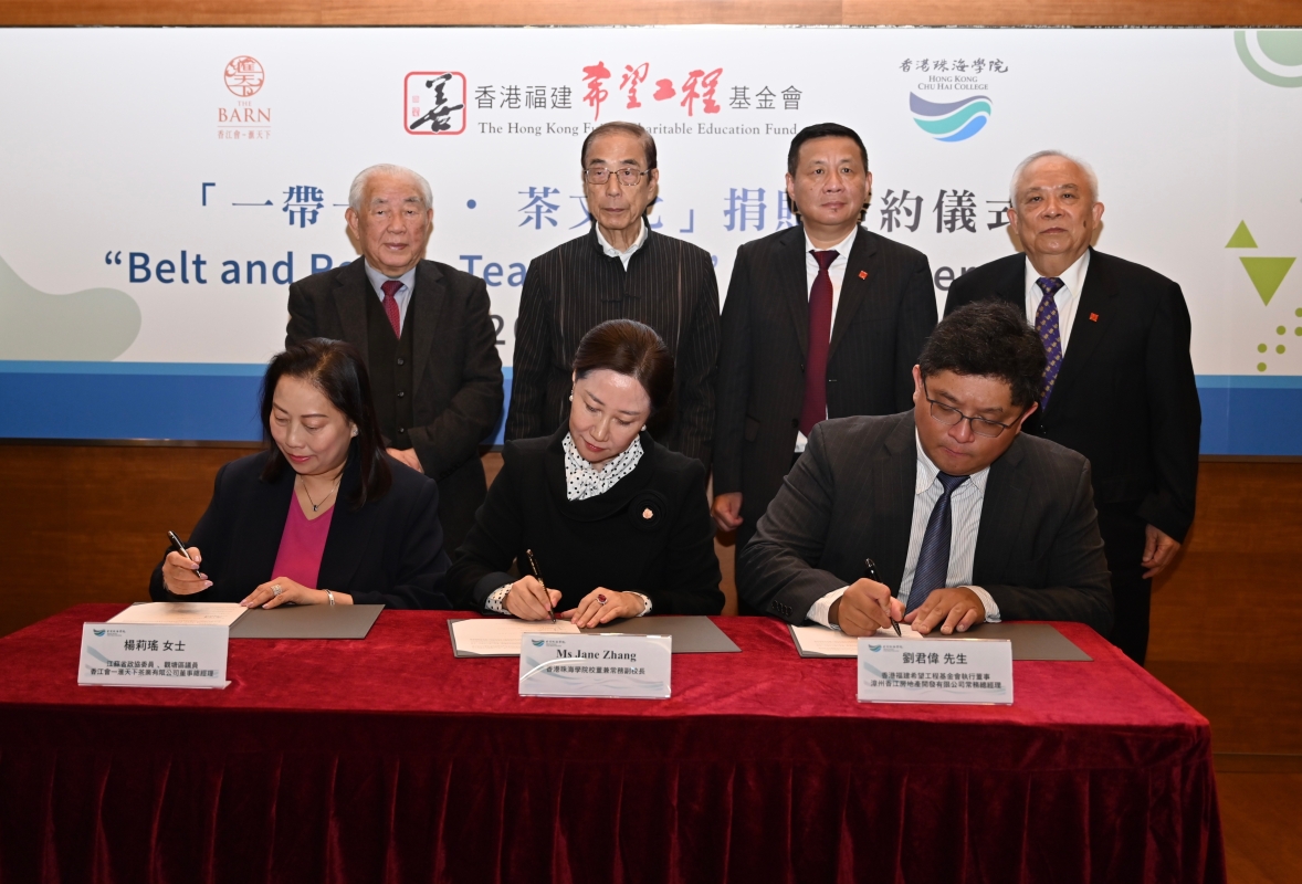 “一帶一路・茶文化”捐贈簽約儀式在香港珠海學院校董會主席林廣兆、香港福建希望工程基金會主席洪頂擁、榮譽主席劉志仁及楊孫西的見證下,由香港珠海學院校董兼常務副校長張珍,江蘇省政協委員、觀塘區議員、香江會──滙天下茶業有限公司董事總經理楊莉瑤及香港福建希望工程基金會執行董事兼漳州香江房地產開發有限公司常務總經理劉君偉代表共同簽署。 此次捐贈對自清朝以來祖輩即從事推廣茶葉生意的楊孫西個人及家族來說別具意義。劉君偉在代表致詞時指,中國的茶文化不但存在於普羅民眾的日常生活之中,還融合在中國的詩詞、繪畫、書法、宗教、醫學等上層精神文化文明之中,這也是中國茶文化與其他國家茶文化有極大區別的原因。 他表示,在珠海學院這所香港高等學府內開設茶文化、茶藝等相關課程研究是非常有必要和及時的,除了能逐一研究介紹全世界不同的文化和品茶方式,還能促進兩岸四地、一帶一路的茶文化交流,藉此講好中國和香港的故事,串聯和發揚不同的茶文化,意義非凡。(完) 【編輯:譚暢】