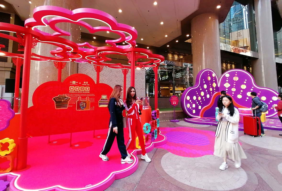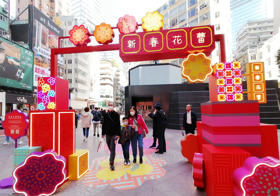 香港市民在《新春花蕾》彩飾中感受農曆新年喜慶氣