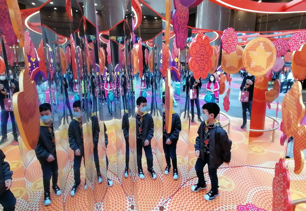 小朋友在賀年萬花筒中玩樂