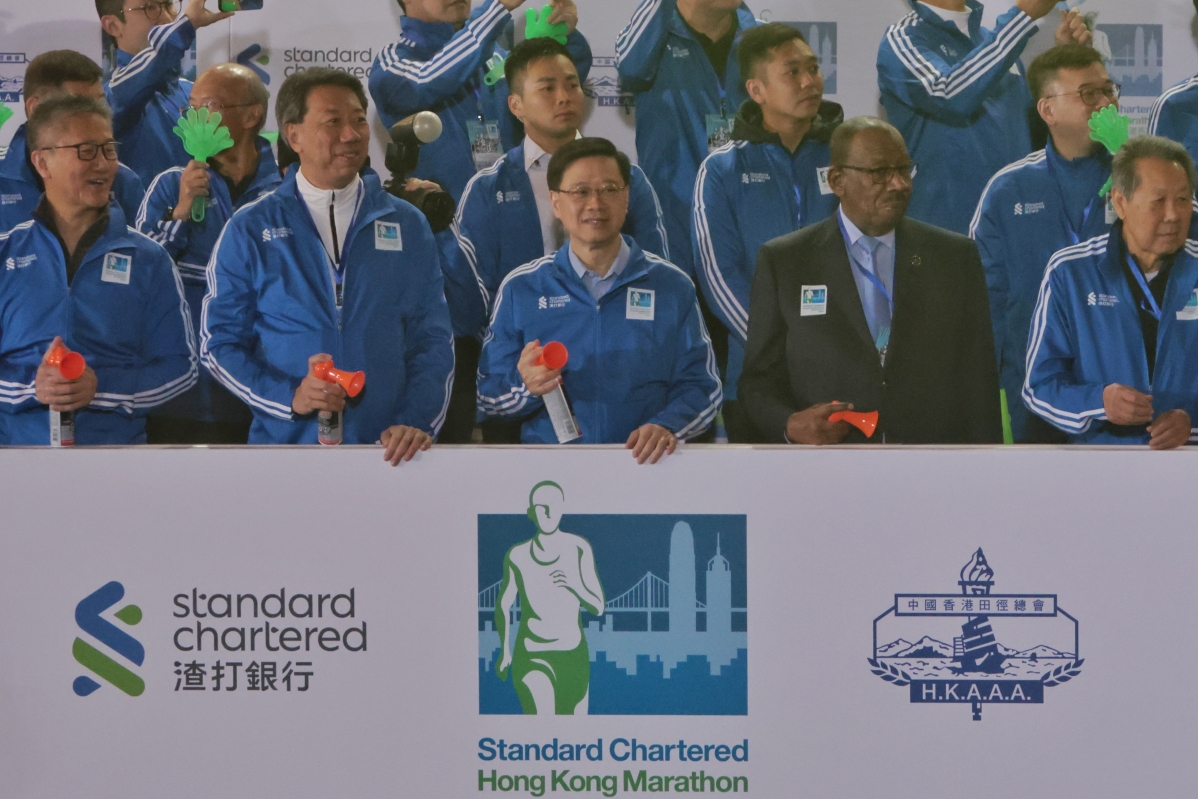 香港特區行政長官李家超(中)主持起步禮