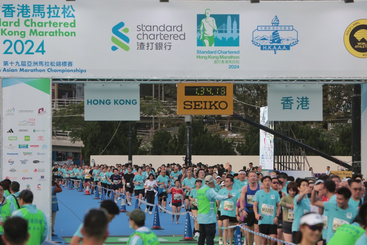 香港新聞網1月21日電(記者 謝光磊 ) 1月21日,香港2024渣打馬拉松早上5時40分在九龍尖沙咀彌敦道開跑,規模回復至疫情前的74000個參賽名額。10公里賽事設在港島東區走廊起步,終點都在港島维園。今年,大會邀請多名海外跑手參與全馬賽事,同場亦舉行亞洲馬拉松錦標賽。香港特區行政長官李家超主持起步禮。 部分半馬及10公里賽事上午決出賽果。其中男子10公里賽,由內地跑手陳雨繁奪得冠軍,用了30分鐘58秒,女子10公里則由本地跑手曾曉彤奪得冠軍,以36分鐘46秒衝線。而全馬赛事方面,30歲的肯亞跑手Seroi Anderson首先衝線,以2小時12分50秒成為今屆渣打馬拉松全馬男子組冠軍