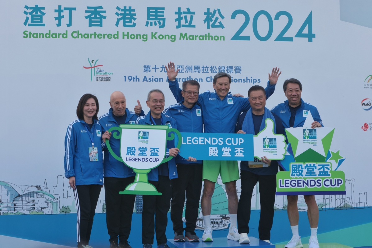 同場亦舉行闊別5年的“領袖盃”,政商領袖及各界名人一同參與全長約兩公里的短途比賽,香港特區政府財政司司長陳茂波(中)以“嘉賓跑手”身份參加,取得“殿堂盃”亞軍。