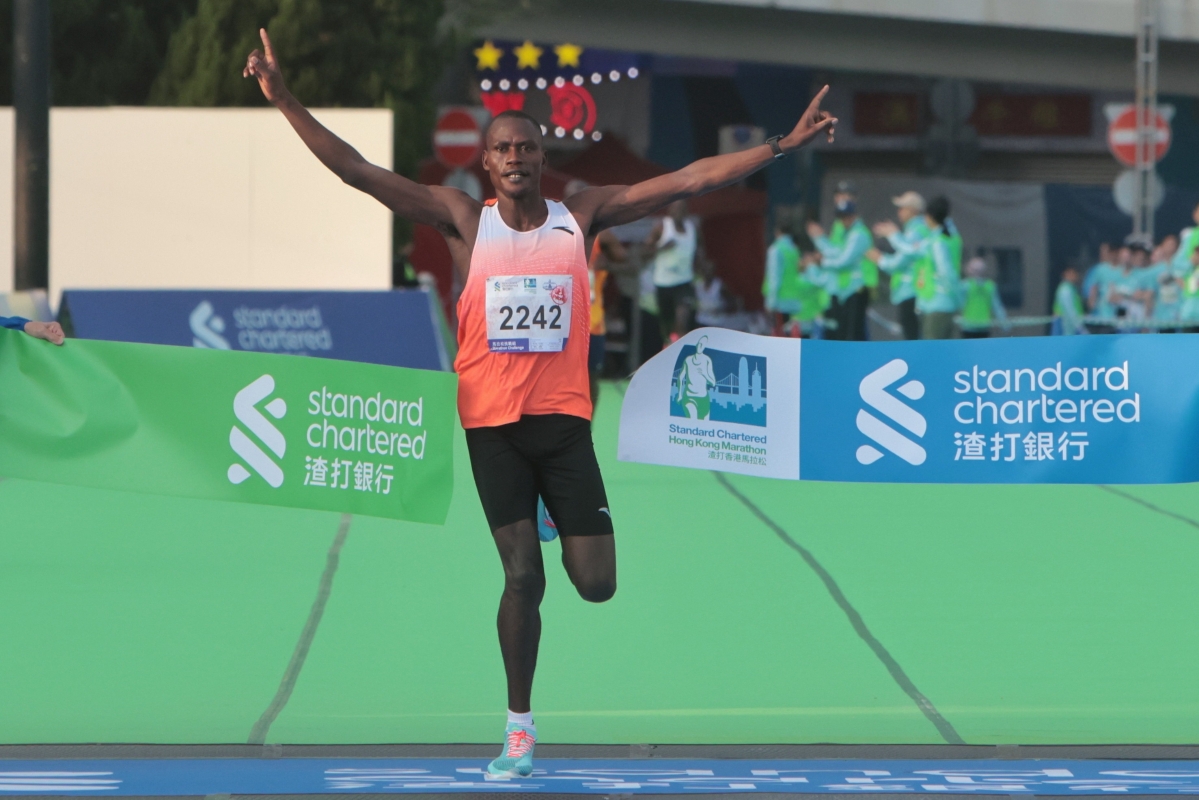 30歲的肯亞跑手Seroi Anderson首先衝線,以2小時12分50秒成為今屆渣打馬拉松全馬賽事男子組冠軍 【編輯:謝光磊】