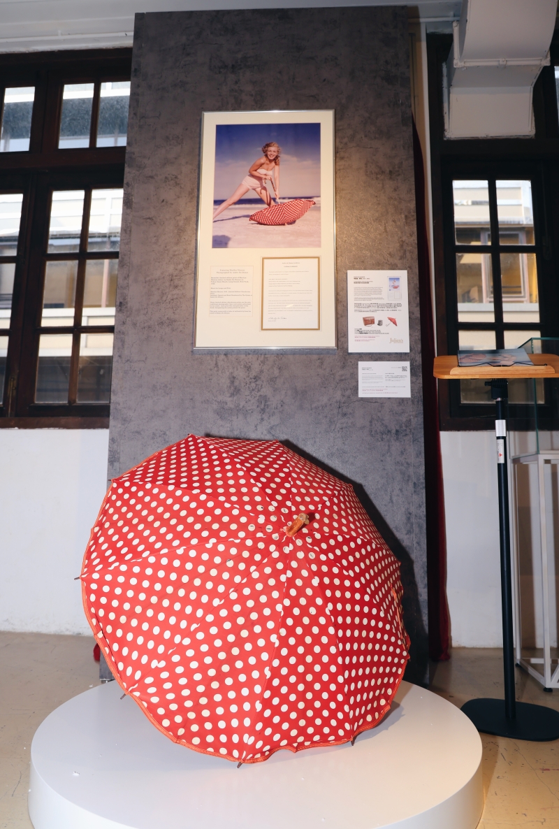 一把紅白圓點傘,瑪麗蓮·夢露於1949年與攝影師安德烈·德·迪尼斯(Andre de Dienes)在瓊斯海灘拍攝時使用。