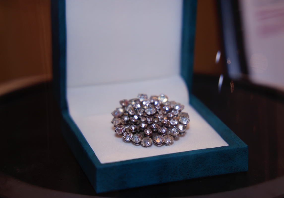 瑪麗蓮·夢露的花飾仿真鑽石胸針。
