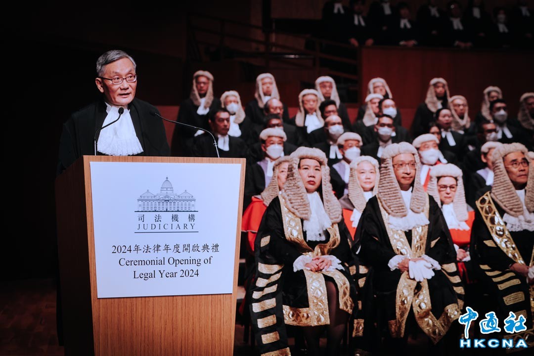 1月22日,香港2024年法律年度開啟典禮在香港大會堂舉行。圖為終審法院首席法官張舉能發表演說。(香港中通社記者 謝光磊攝)