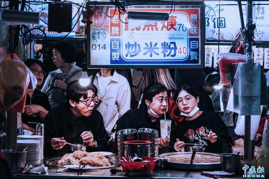近期,台灣天氣轉冷,各大夜市的生意依舊火熱,在台北寧夏夜市,連日來吸引了大批公眾前來消費觀光,人氣火爆。(香港中通社記者 許其皓攝)