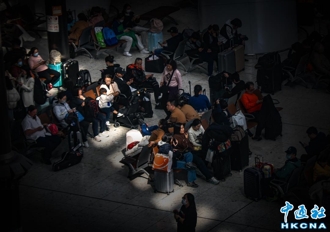 1月26日,2024年春運首日,香港高鐵西九龍站客流順暢。圖為大批旅客乘搭高鐵出境。(香港中通社記者 許其皓攝)
