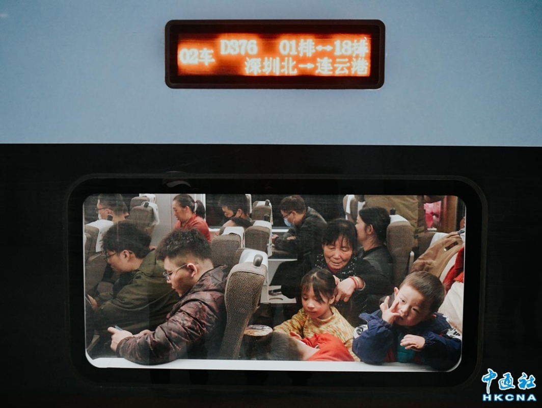 1月26日早晨,由深圳北站開往連雲港的D376次深圳春運首趟列車開出。(聞子 攝)