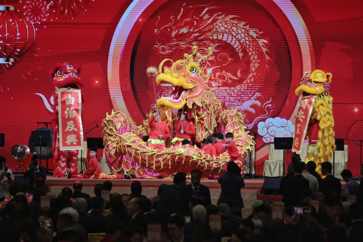 香港特區行政長官李家超致辭時介紹特區政府在龍年的三大重點工作,包括盡快完成基本法第23條立法;全力推動經濟發展,更好融入國家發展大局,提升香港的國際競爭力;以及持續不斷改善市民生活,把關愛共融落到實處