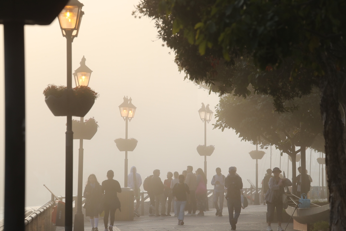 不少市民和遊客在霧色中欣賞風景和拍照
