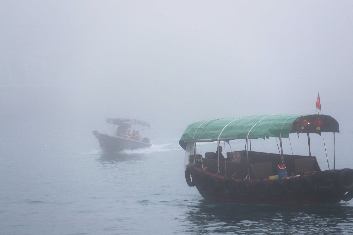 部分水域能見度低於兩海里,漁船輪渡謹慎地駕駛