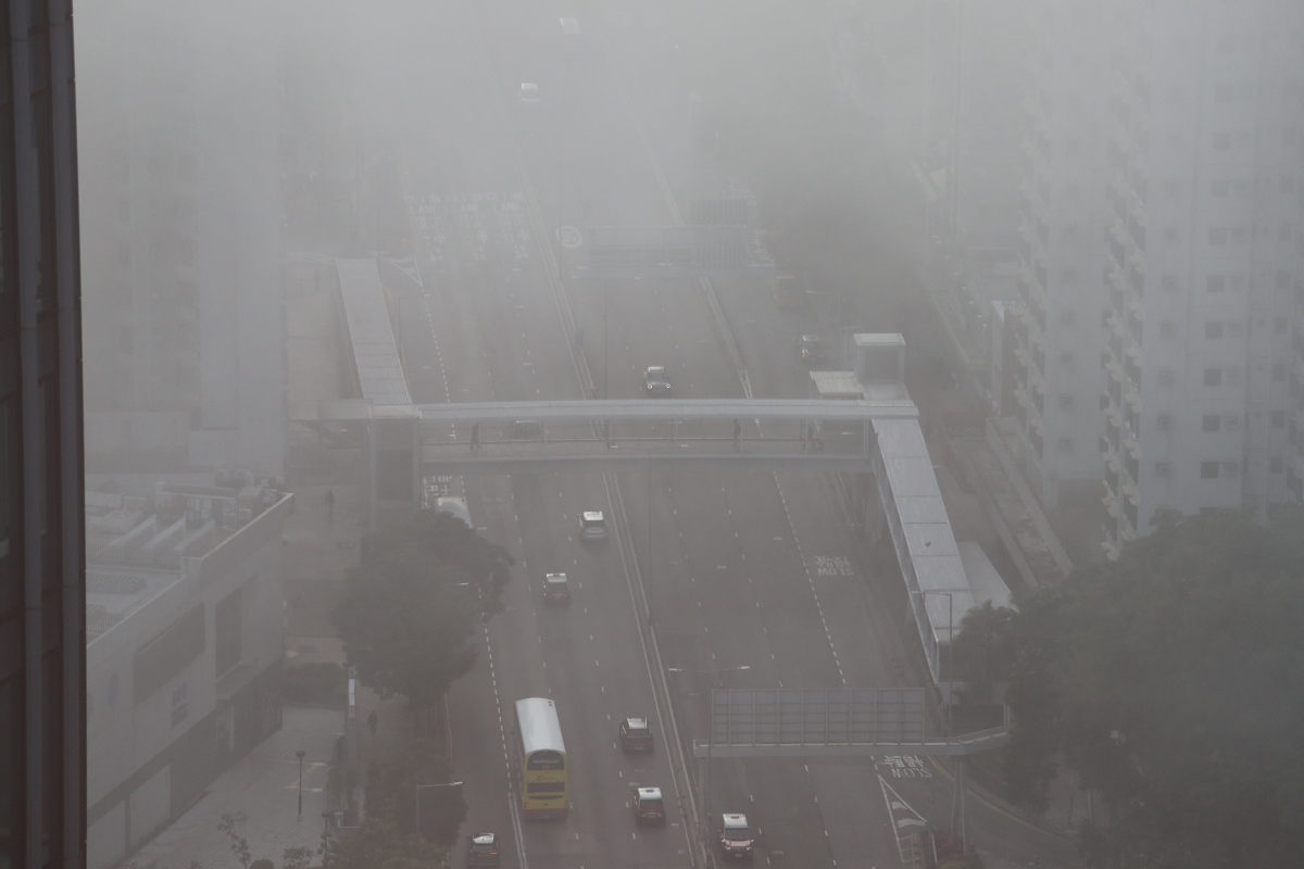 不少市民和遊客在霧色中欣賞風景和拍照 香港仔高處俯視馬路能見度低