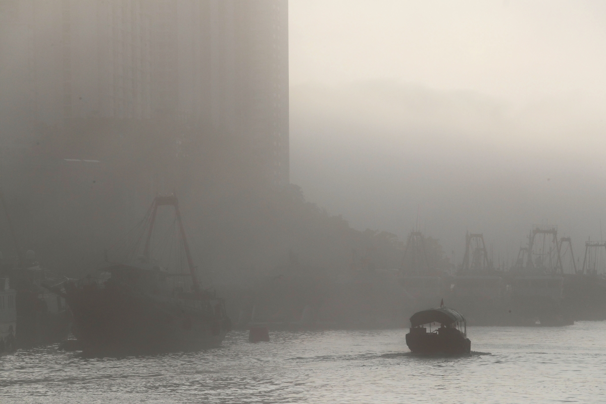 香港仔避風塘籠罩在霧色之中