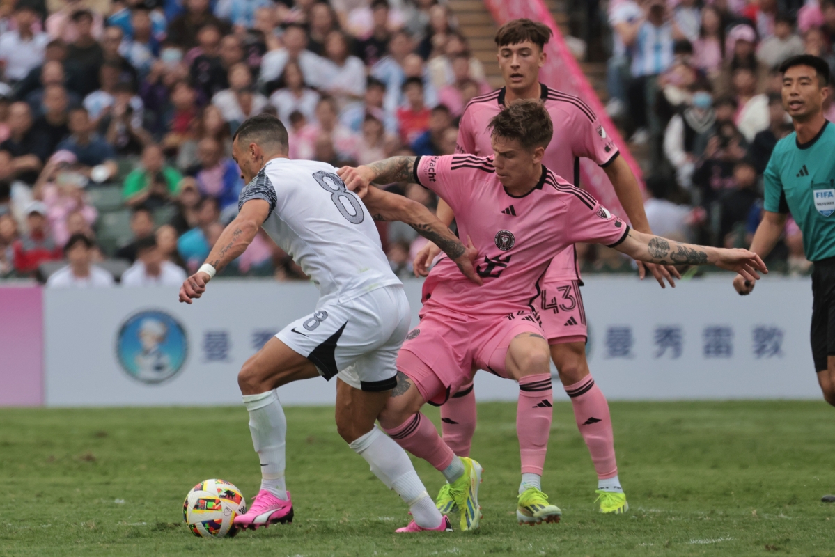 阿根廷球王梅西率領的國際邁阿密隊在香港大球場與港隊進行友誼賽