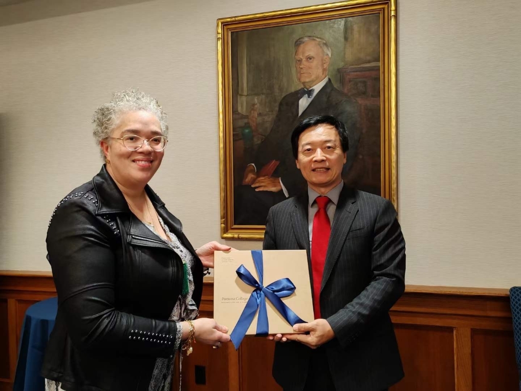 圖片來源:嶺南大學。 秦泗釗在美期間訪問了美國著名的博雅大學波莫納學院(Pomona College),與校長G. Gabrielle Starr會面,雙方就博雅教育的國際化發展趨勢和實踐經驗進行交流,並期望兩校加強校際合作。秦泗釗提到,兩校緣分可以追溯到100年前,於1907至1924年任嶺南大學前身格致書院的校長Charles K. Edmunds,亦曾於1928年至1941年擔任Pomona College校長。