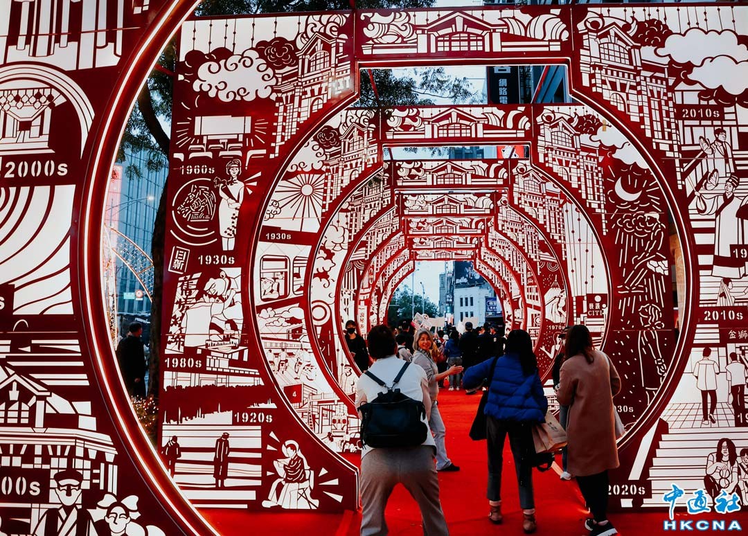 農曆新年臨近,澳門龍年燈飾紛紛亮相街頭,新馬路巨型賀歲燈飾亦已點亮,吸引不少旅客前往觀看,感受春節氣氛。香港中通社圖片