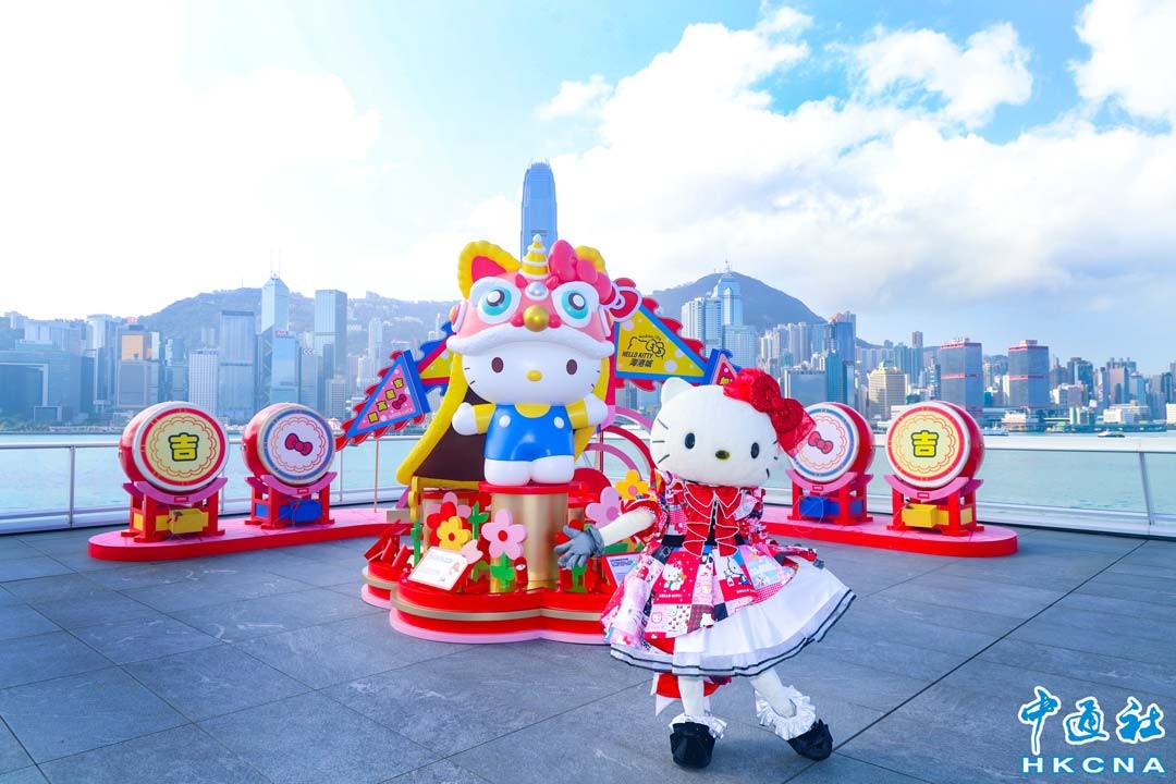 2月2日,Hello Kitty於香港海港城Hello Kitty周年慶典主題裝置拍照。風靡全球的人氣角色Hello Kitty今年踏入50周年,在世界各地以不同方式慶祝,在香港則與海港城合作,由1月25日起至2月25日舉辦周年慶典,在海港城設有豐富的活動和大型主題裝置。(香港中通社記者 許其皓攝)