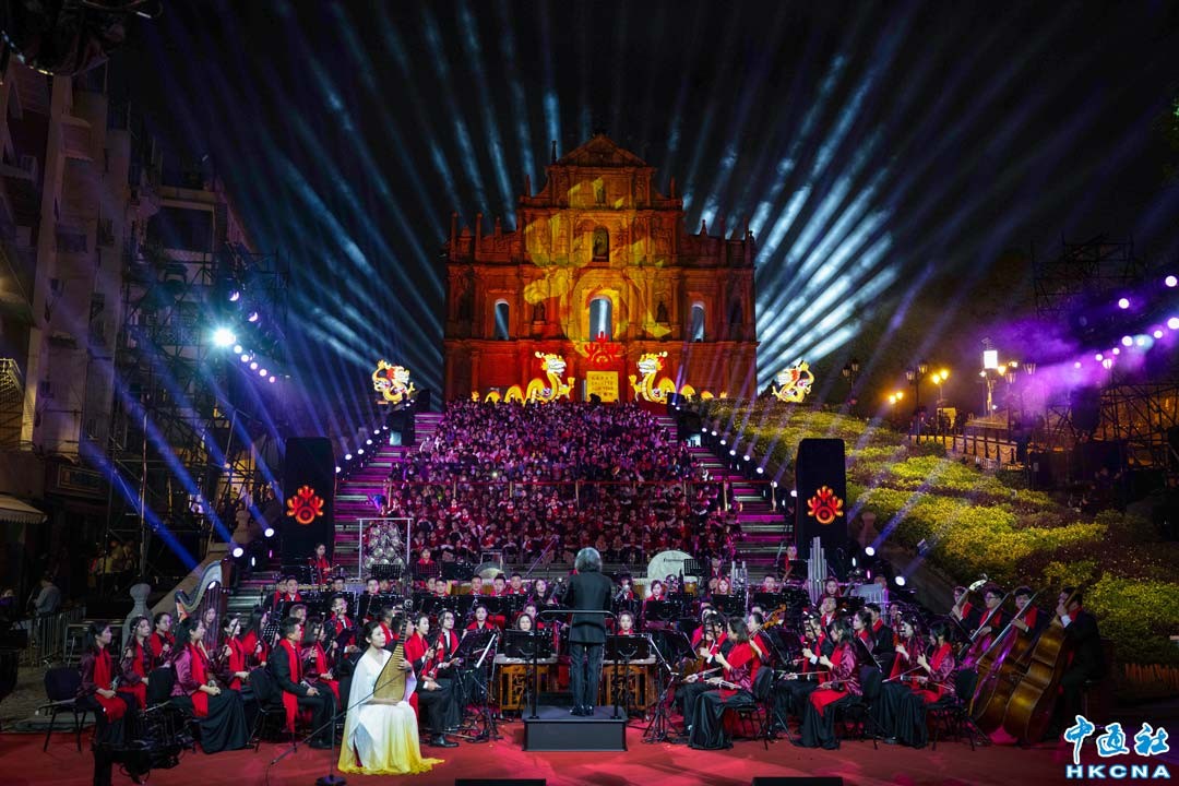 2月3日,2024年“歡樂春節”啟動儀式暨“歡樂春節 春滿濠江”音樂會。當日,由國家文旅部、澳門中聯辦指導,中國對外文化交流協會及澳門社會文化司主辦,中國對外文化集團有限公司及澳門文化局承辦的2024年“歡樂春節”啟動儀式暨“歡樂春節 春滿濠江”音樂會,在大三巴牌坊舉行並錄製,節目將於新春期間在文旅部官方平台及合作渠道中播放。香港中通社圖片