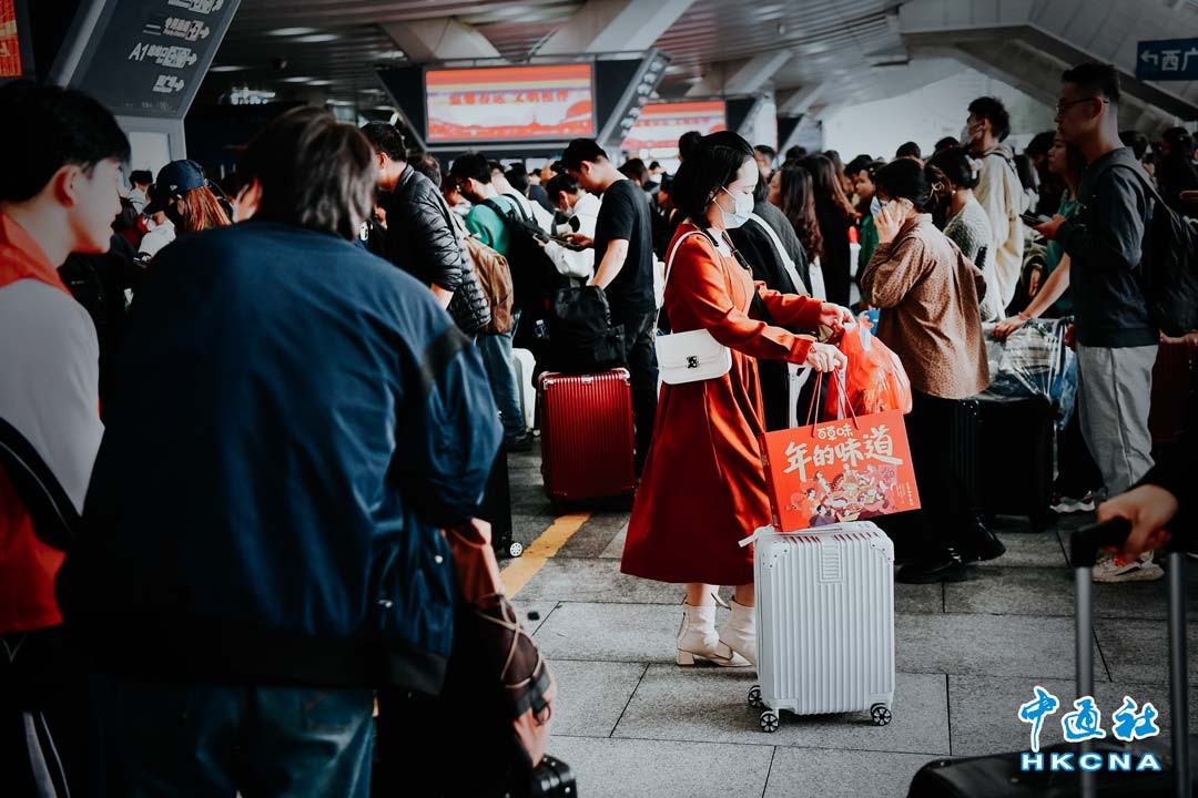 2月3日,深圳北站候車大廳內外,出行旅客帶著孩子、陪著家人、拎著年貨踏上回家路。2月2日,深圳北站發送旅客達24.2萬人次。(聞子 攝)