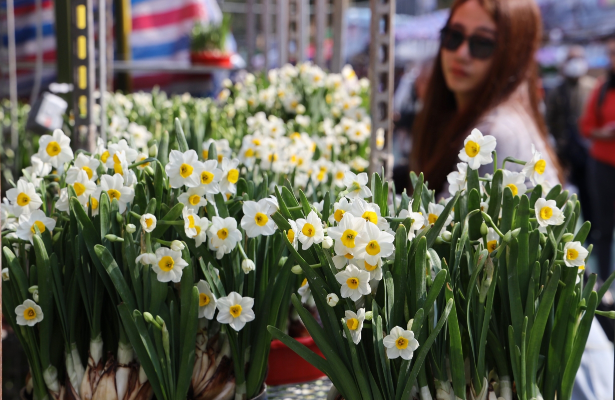 家長帶小朋友感受農曆新年氣氛 水仙花