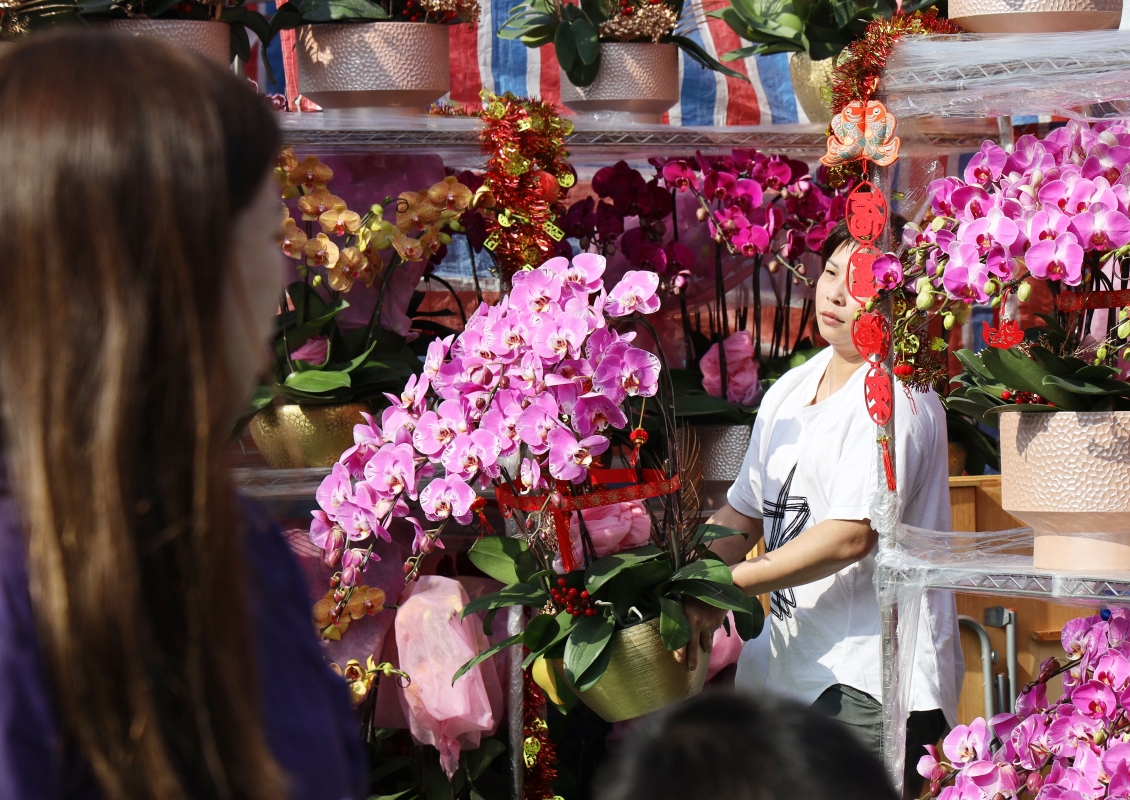 香港新聞網2月6日電(記者 洪少葵) 2月6日,臨近農曆新年,香港維園年宵花市熱鬧非常,不少市民和遊客逛花市,選購年貨和年花。今年維園共有300多個攤位,增設主題攤位售賣賀年食品、揮春、年畫、賀年用品和裝飾物。記者現場見到有幼稚園師生在花市感受節日歡樂氣氛。老師也現場教導幼兒認識各種各樣的花卉,增加生活常識。2月4日起至10日,全港共有15個年宵花市地點,共設約1500個濕貨、乾貨、快餐和主題攤位,會開放到大年初一早上7時。