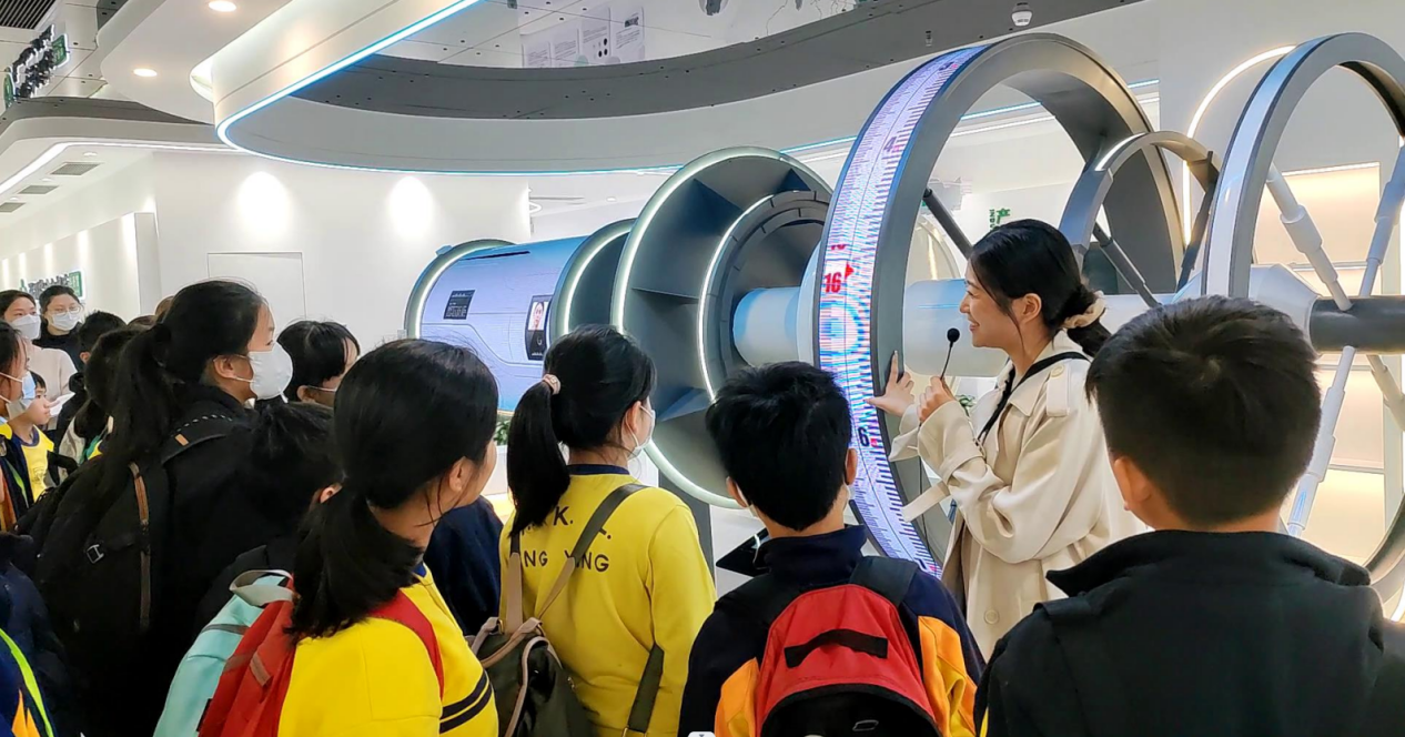 香港教育工作者聯會黃楚標中學師生出發前合照。 探索航天科技魅力,感受祖國強大 計劃首程是全國科普教育基地——深圳市綠航星際太空科技研究院。在研究院,學生觀看了我國航天記錄片,了解我國航天事業的發展歷程,從早期的火箭試驗到如今的神舟飛船、天宮空間站,每一個關鍵時刻都被鏡頭捕捉下來。學生們聚精會神地觀看著,不時發出驚歎的聲音,他們為祖國的航天科技感到自豪,對那些默默奉獻的航天英雄們充滿敬仰之情。