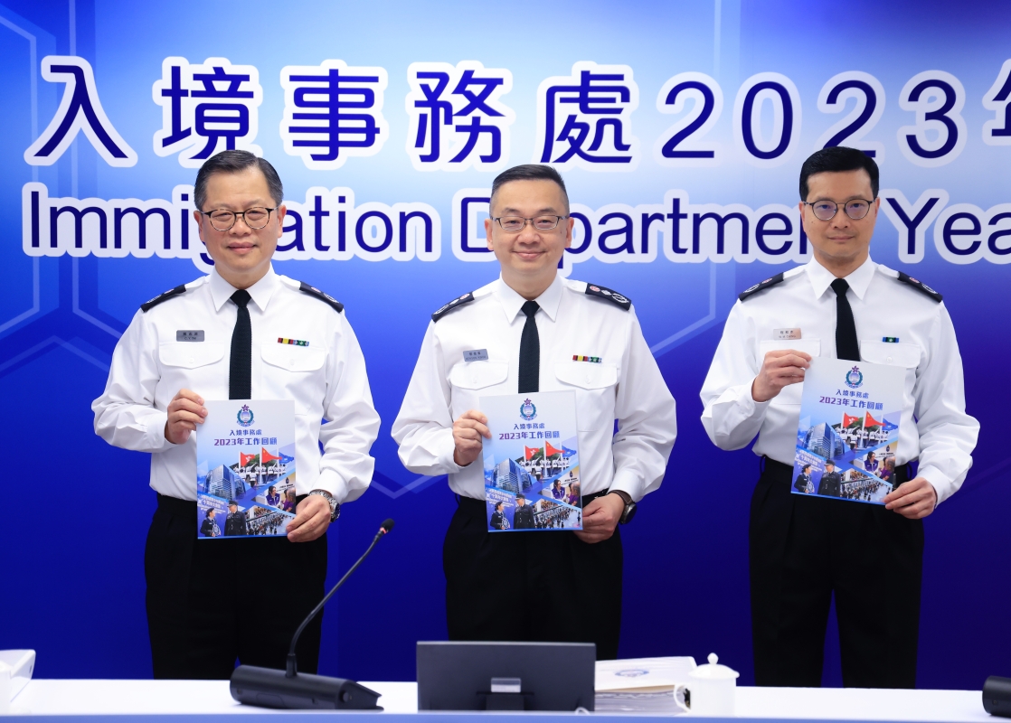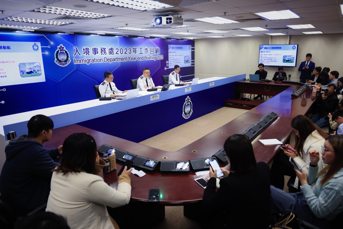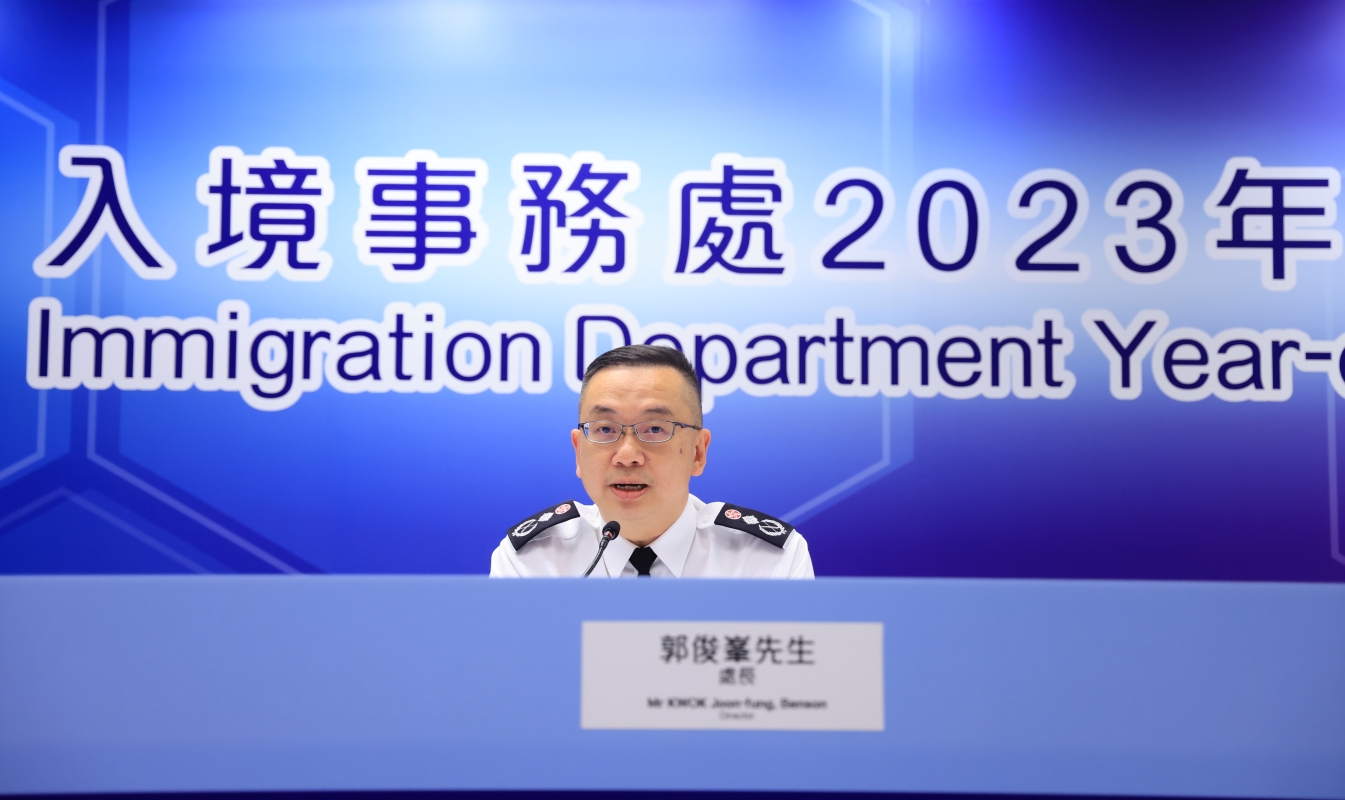 香港入境事務處處長郭俊峯主持新聞發布會,回顧2023年入境處的工作