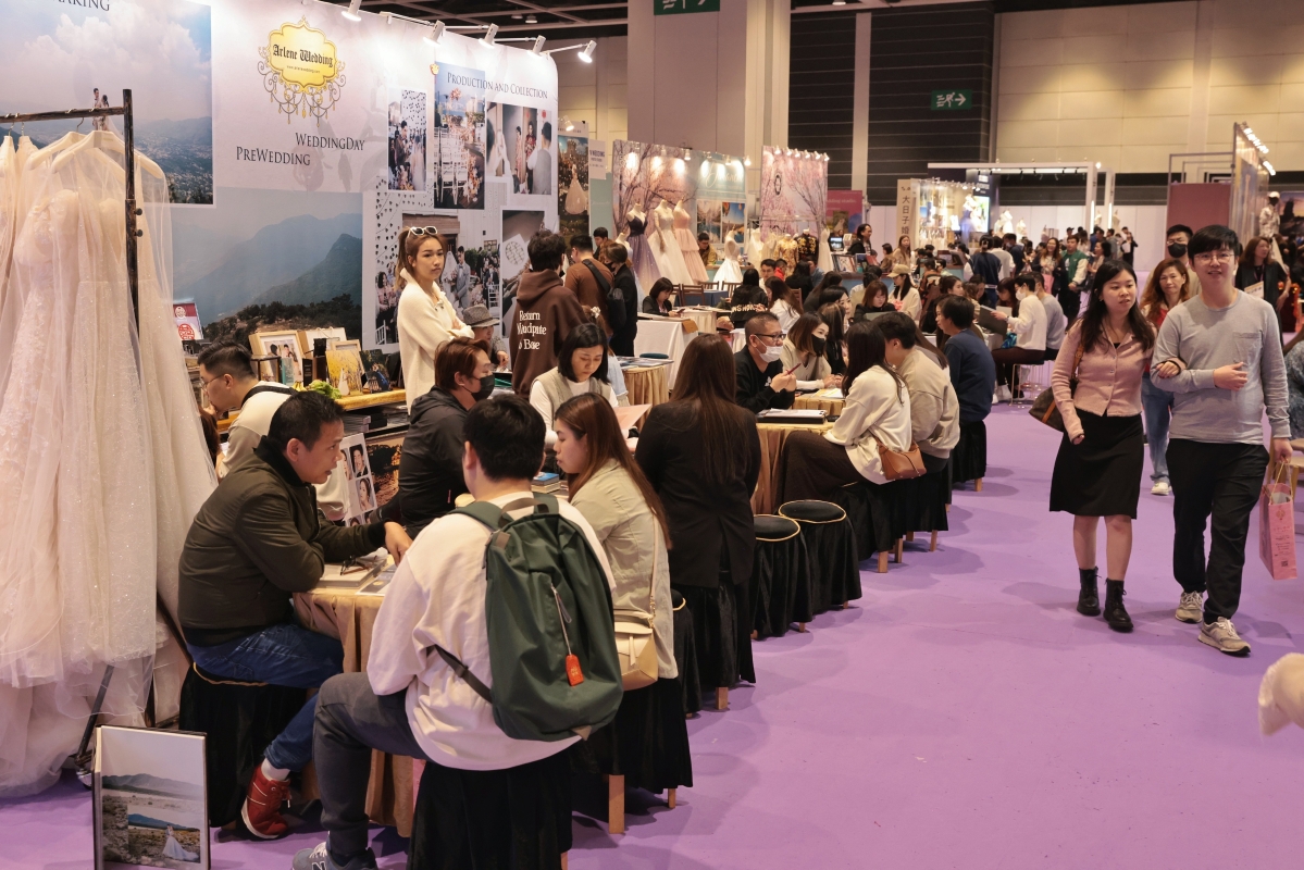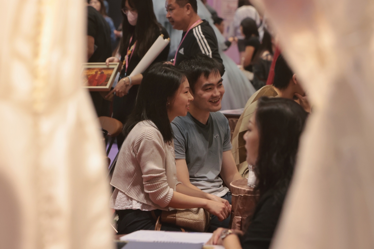 當天正逢週日,不少準新人入場諮詢瞭解拍婚紗、訂酒席等結婚相關事宜