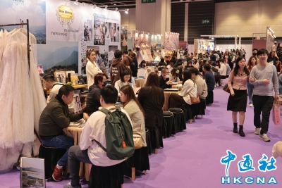 香港新聞網2月18日電(記者 謝光磊 ) 2月18日,龍年首個大型結婚節,第113屆香港結婚節暨2月婚紗展於香港會議展覽中心舉行,場內有逾300個展位,為準新人呈獻城中最熱門婚嫁精選優惠及禮遇,吸引大批市民前來參觀選購。當天正逢週日,不少準新人入場諮詢瞭解拍婚紗、訂酒席等結婚相關事宜。