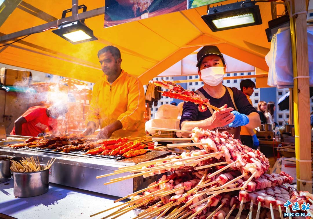 香港大埔林村2024農曆新年首設“林村許願夜市”,於2月7日至13日舉行,設有逾80個攤檔,其中,夜市大會特設“林村美食嘉年華”區域,供應各式掃街美食,此外也有手作、花卉、本地漁農產品、攤位遊戲、打卡裝置等。(香港中通社記者 曹文毓攝)