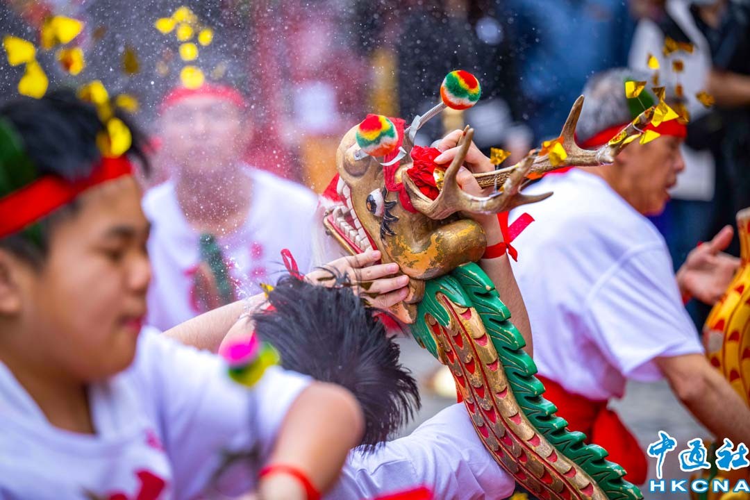 2月17日,澳門鮮魚行舉行龍騰醉耀舞濠江。當日,澳門鮮魚行總會在十六浦戶外廣場舉行“龍騰醉耀舞濠江”舞醉龍表演,與市民共賀新春佳節。香港中通社圖片