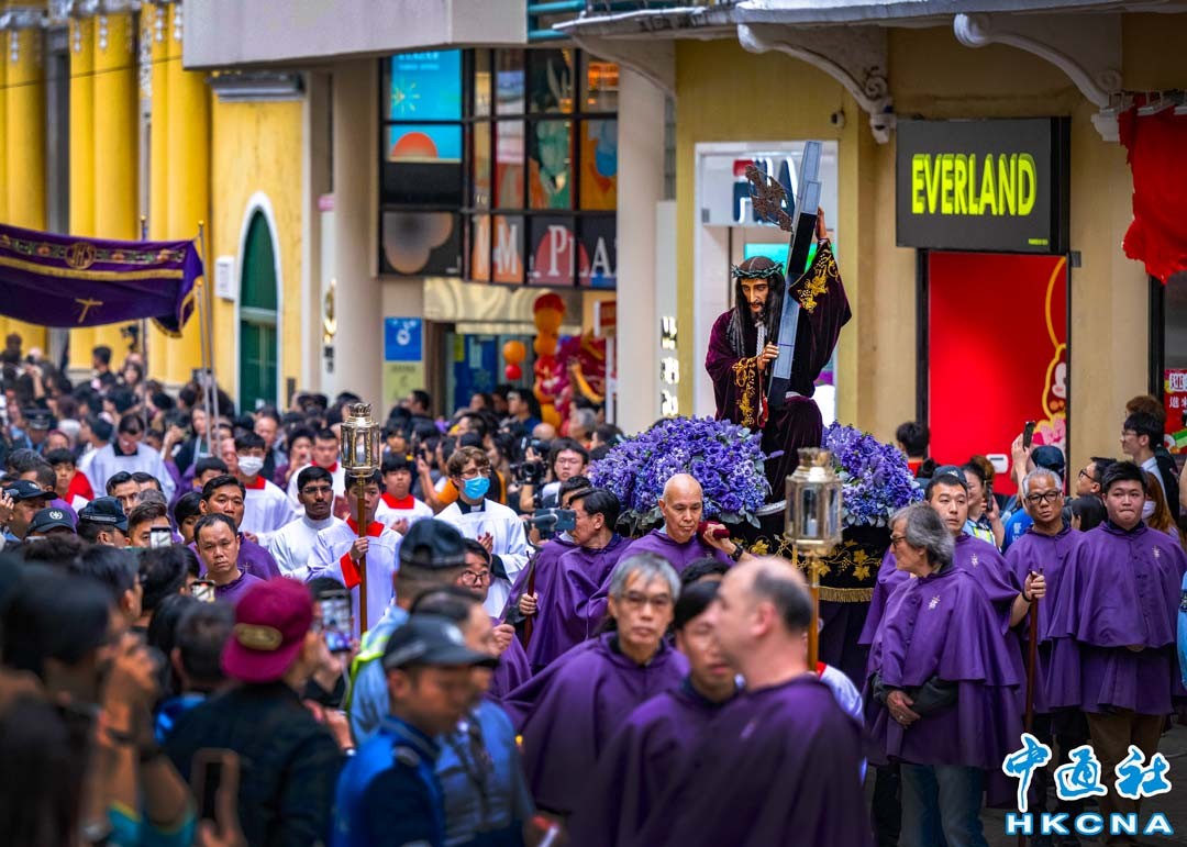 2月18日,澳門舉辦“苦難善耶穌聖像巡遊”。當日,澳門舉辦“苦難善耶穌聖像巡遊”,巡遊隊伍從主教座堂出發,背上十字架的“大耶穌”像緩緩前行,大批信眾護送,氣氛莊嚴。香港中通社圖片