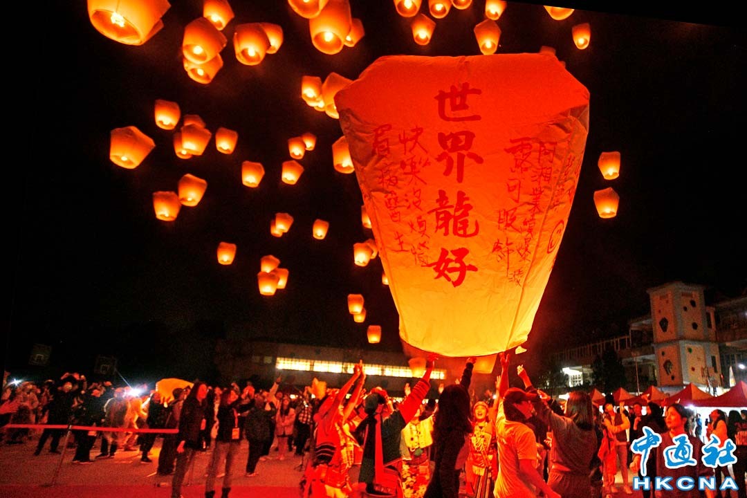 “2024新北平溪天燈節”2月17日晚間在台灣新北市平溪中學登場,民眾在天燈上各自寫下自己的願望,有的希望賺大錢,有的希望幸福美滿,美麗天燈帶著大家許下新年新願望緩緩升空,瞬間點亮漆黑的夜晚,化作浪漫燈海。 香港中通社圖片