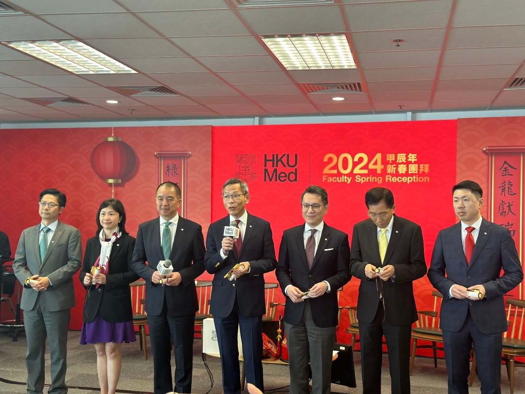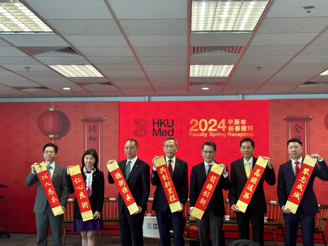 左起為副院長潘烈文教授、黃穎兒教授、梁嘉傑教授,院長劉澤星教授,副院長謝偉財教授、院長資深顧問陳應城教授,以及副院長孔繁毅教授。(香港中通社圖片 陳卓儀攝) 龍年新春,劉澤星認為龍擁有強大生命力和創造力,而港大醫學院擁有137年的歷史,新領導團隊會以新科技擁抱新機遇,帶領醫學院為香港、國家以至全球人力的健康努力。 據介紹,港大醫學院未來重點落在教與學、研究、臨床事務、校園發展及基建、人力資本、夥伴拓展及協作等六大範疇。