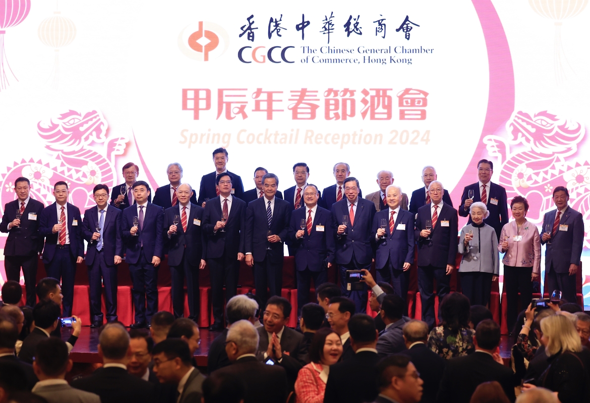 香港新聞網2月22日電 香港中華總商會22日在香港君悅酒店舉行“甲辰年春節酒會”。全國政協副主席梁振英、特區政府財政司副司長黃偉綸及香港立法會主席梁君彥應邀擔任主禮嘉賓,聯同該會各首長向出席來賓祝酒,歡慶新春。