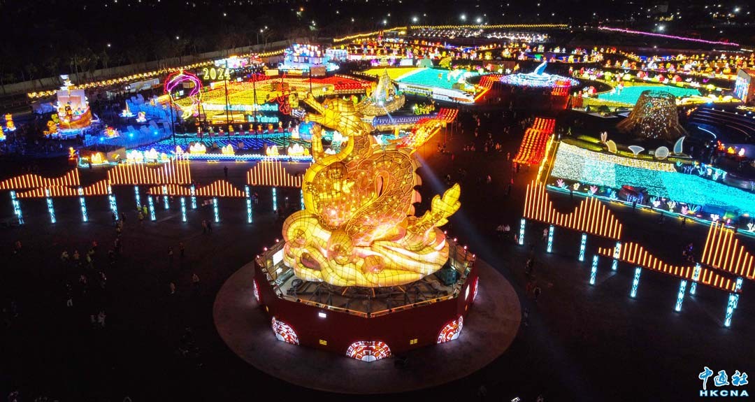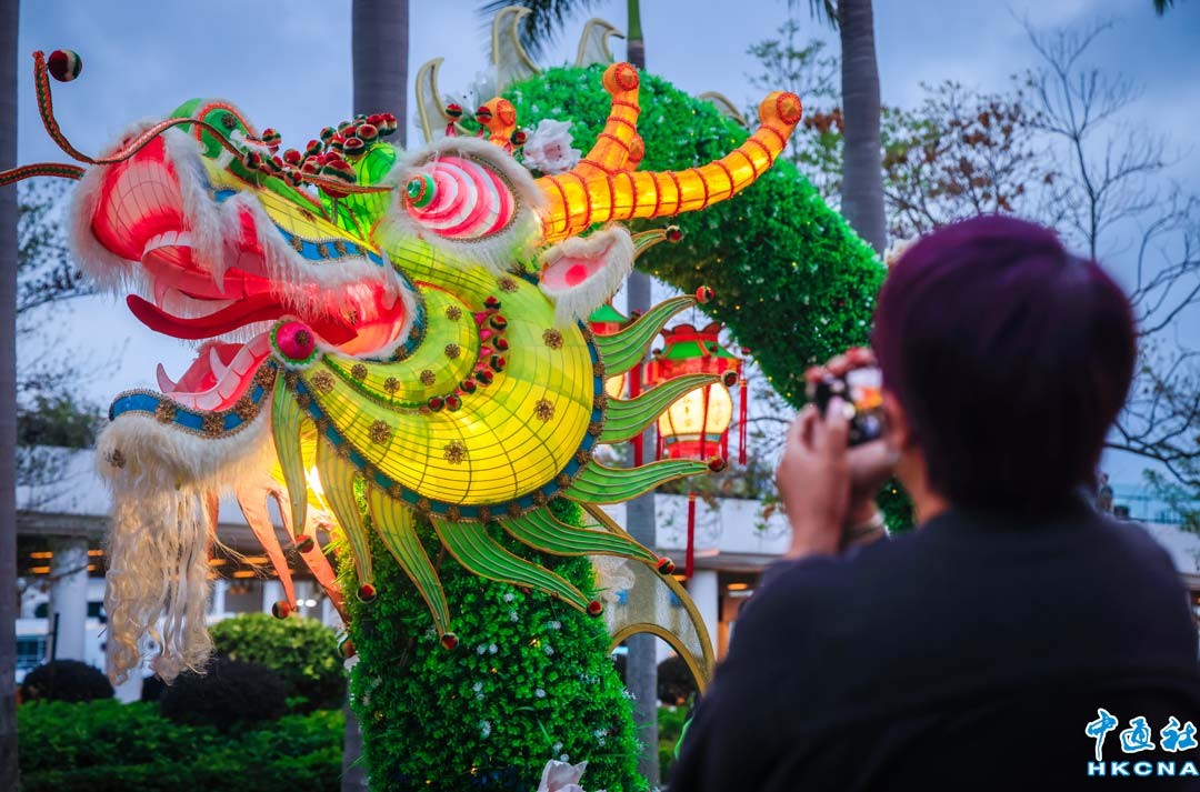 近日,香港康樂及文化事務署以《龍躍花燈.喜迎新歲》為題,於香港文化中心露天廣場舉行元宵綵燈展,綵燈展由非物質文化遺產辦事處與本地紮作師傅陳耀華合作,製作以代表春天生機的青龍為主要設計元素的花燈,吸引眾多市民來打卡。(香港中通社記者 曹文毓攝)
