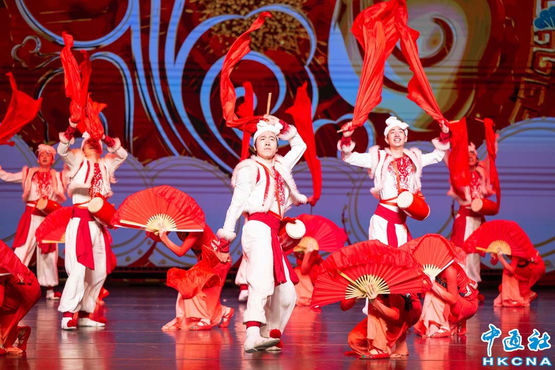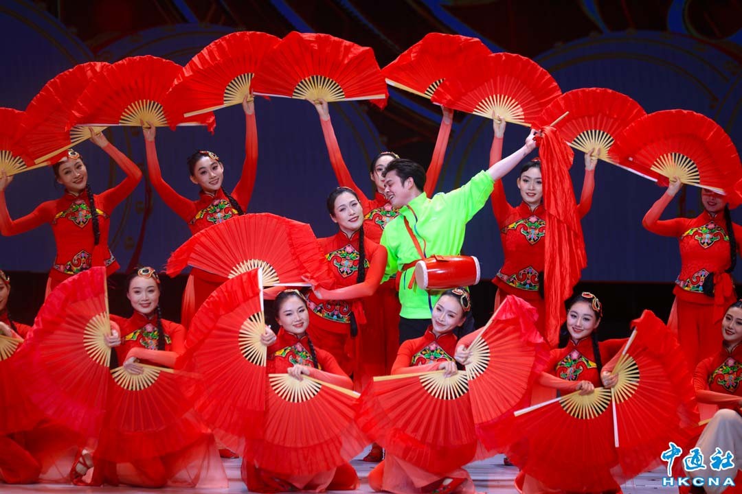 2月20日,演員在文藝晚會上表演。當日,2024“四海同春”大型春節文藝晚會在澳門文化中心舉行開幕儀式,邀請了中國煤礦文工團以及中央歌劇舞劇院和天津音樂學院等國家一級演員參演,為觀眾帶來了一場極具中國韻味和春節喜氣的文化大餐。香港中通社圖片
