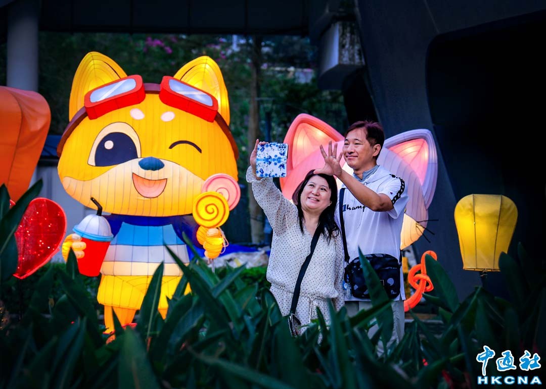 近日,香港康文署在香港單車公園舉辦以“童趣夢幻樂園”為主題的元宵綵燈展。今年綵燈展呈獻一系列富有童趣及色彩繽紛的燈組,包括龍寶寶綵燈、璀璨奪目的走馬燈,以及“活力仔”和“思文喵”等,將香港單車館公園布置成一個童趣夢幻樂園。(香港中通社記者 曹文毓攝)