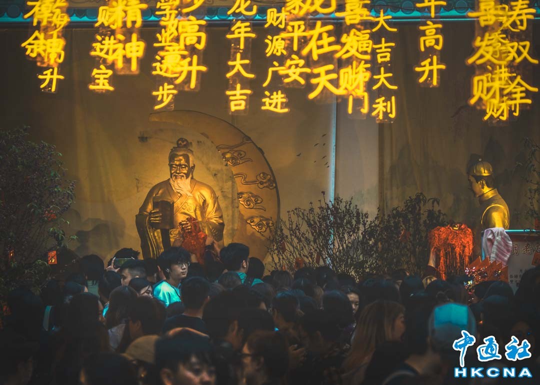 2月24日是農曆元宵節,香港大批善信到黃大仙祠參拜月老,以求得好姻緣。(香港中通社記者 許其皓攝)