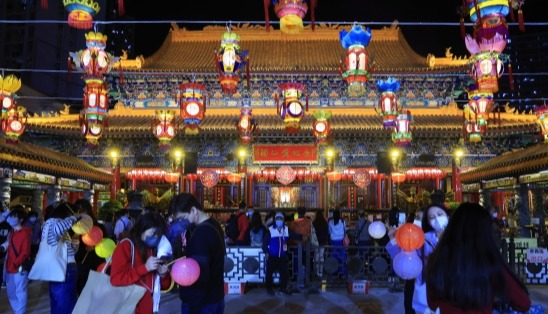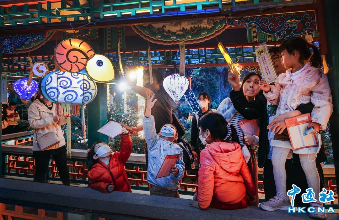 2月24日是農曆元宵節,香港不少市民到黃大仙祠賞花燈猜燈謎。(香港中通社記者 許其皓攝)