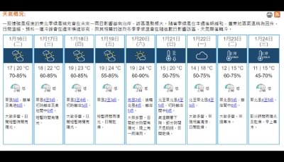天文台指,一股達強風程度的東北季候風會在明日繼續為廣東沿岸帶來較涼的天氣。隨着季候風緩和,周四氣溫回升,最高有24度。不過,周四晚一道冷鋒抵達,周五氣溫會跌至最低15度,預測周六更會跌至最低14度。分區預測顯示,周六上午大埔、上水、西貢等新界地區降溫至11度寒冷水平,打鼓嶺有機會低見9度。 天文台預測,28日風勢較大,天氣仍然較涼。周四日間溫暖,隨後一兩日顯著轉涼,氣溫降至14度或以下。(完) 【編輯:徐嘉儀】