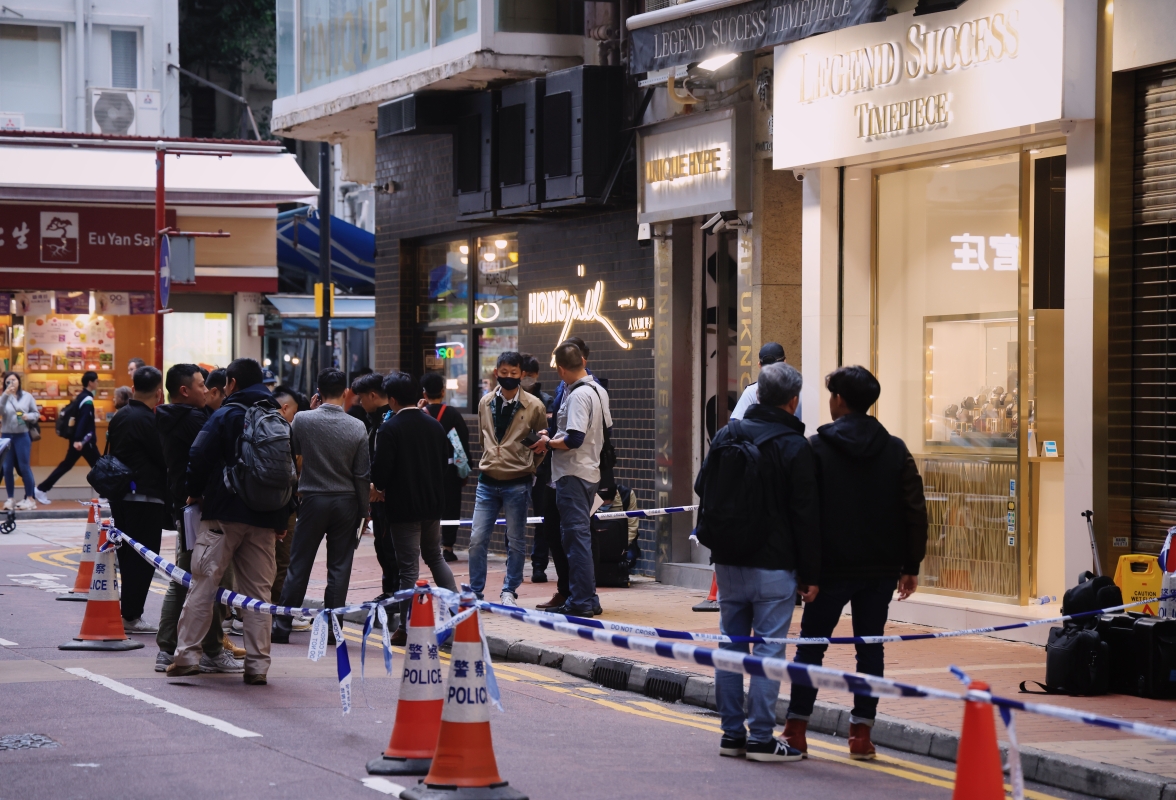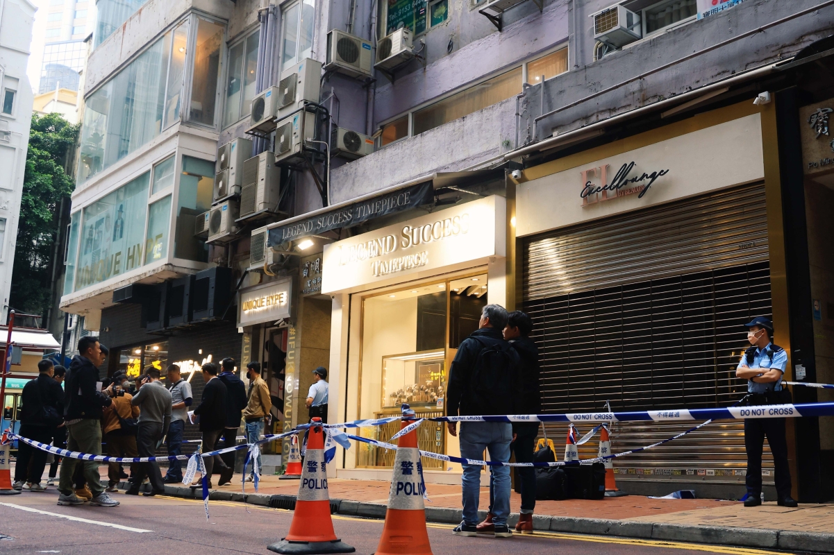 銅鑼灣富明街一家錶行遇劫,警方封鎖現場調查