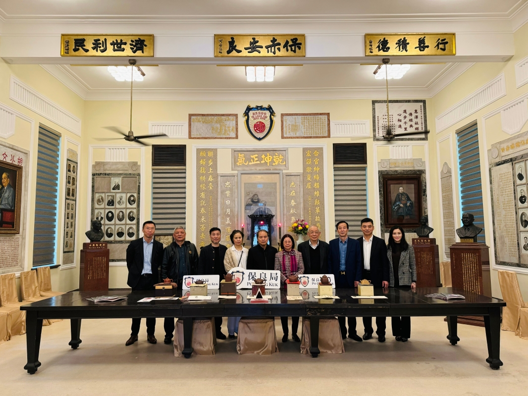 香港新聞網2月29日電 28日上午,出席“一壺風雅耀香港”首屆兩地書畫紫砂合作展的中國紫砂文化研究會會長周汝平等七位中國紫砂大師來到香港保良局,向保良局贈送紫砂藝術壺。 “一壺風雅耀香港”首屆兩地書畫紫砂合作展是由中國紫砂文化研究會、江蘇省收藏家協會、品牌中國戰略規劃院藝術品品牌部主辦,保良局、香港東方書畫院、藝術香港、中國茶文化國際交流協會、香港江蘇社團總會、香港潮州商會協辦。